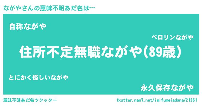 | 男性向けラノベタイトル風あだ名 | 『魔弾の王とながや』『ながやの憂鬱』 |