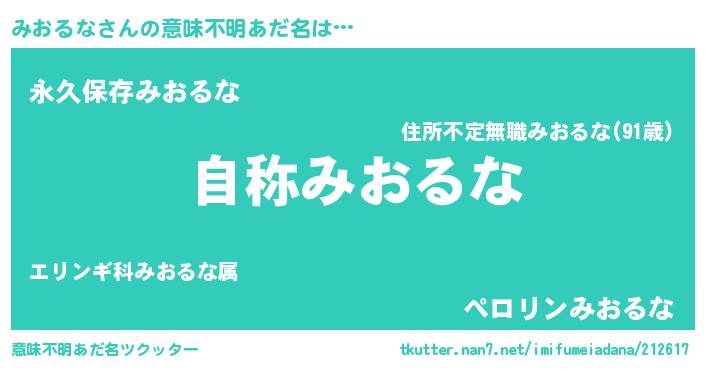 | 胡散臭い通販商品みたいなあだ名 | 『ガンによく効くアガリクス…その名も「みおるな」』 |