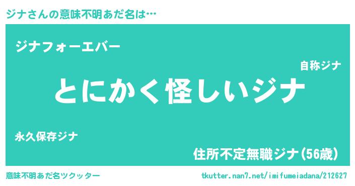 | ヒーロー風カッコイイあだ名 | 『暗黒騎士ジナ』『ウルトラジナマン』 |
