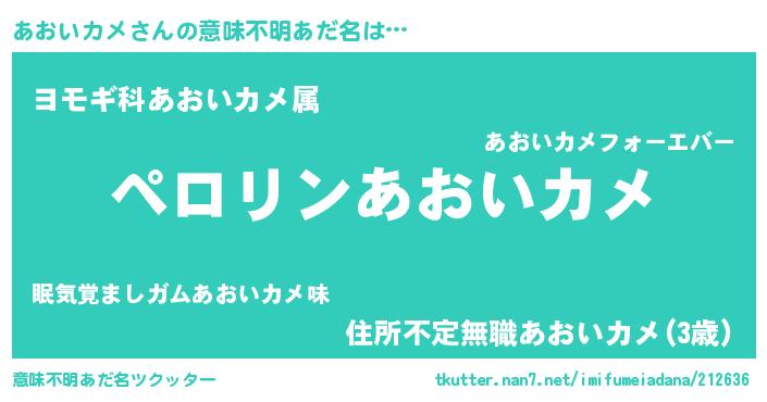 | ヒーロー風カッコイイあだ名 | 『スーパーアオイカメ』『仮面アオダー』 |