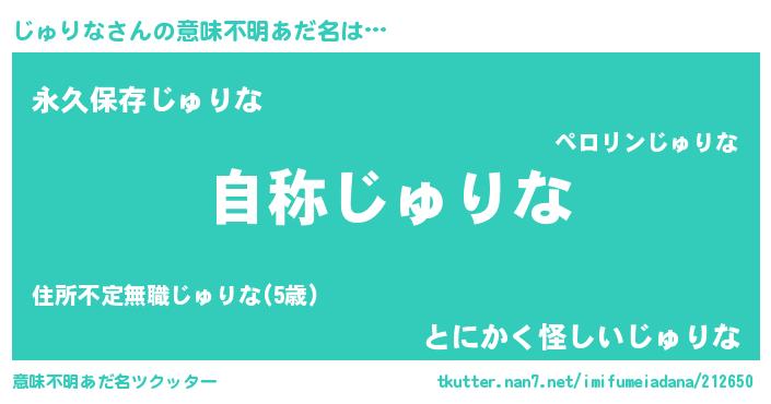| 欧米人風あだ名 | 『じゅりな・ステッグマイヤー』 |