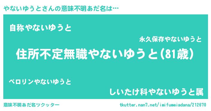 | ヘコむあだ名 | 『やないゆうと(震え声)』『やなふぇ~』 |