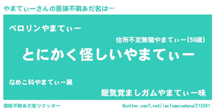 | 男性向けラノベタイトル風あだ名 | 『ダンジョンにやまてぃーを求めるのは間違っているだろうか』 |