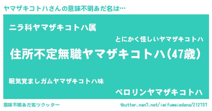 | 欧米人風あだ名 | 『ダレノガレヤマザキコトハ』 |