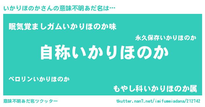 | 女子向けラノベタイトル風あだ名 | 『いかりほのかアンティーク』 |