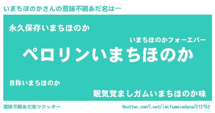| ヘコむあだ名 | 『いまもー』『いまちほのか(小並感)』 |