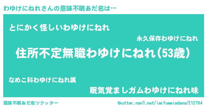 | ポケモン風あだ名 | 『ワーユイ』『ヒワユケニネレ』 |