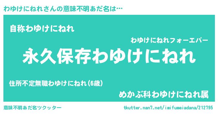 | ヒーロー風カッコイイあだ名 | 『ネオワユケニネレ』『仮面ワユダー』 |