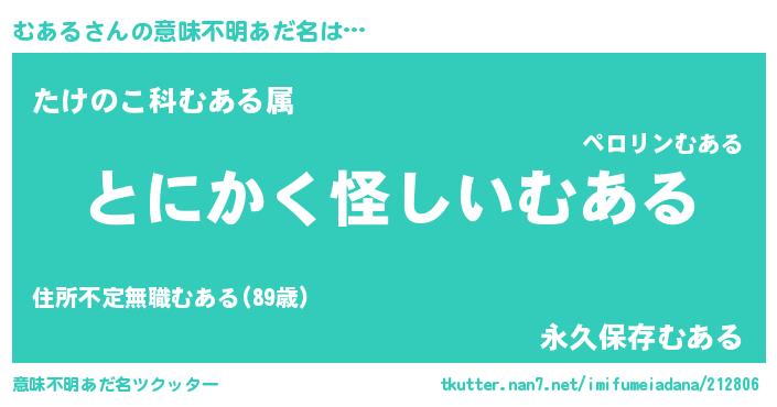 | 女子向けラノベタイトル風あだ名 | 『むあるの卵を拾いまして』 |