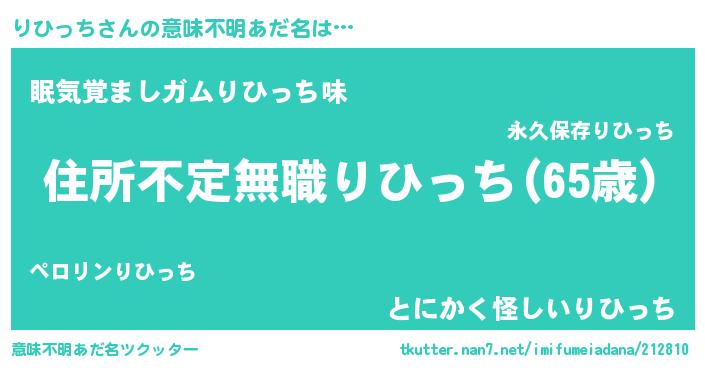 | 男性向けラノベタイトル風あだ名 | 『魔弾の王とりひっち』 |