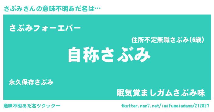 | 男性向けラノベタイトル風あだ名 | 『Re:さぶみから始める異世界生活』 |