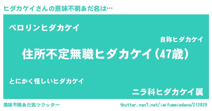 | 料理風あだ名 | 『ヒダカケイのカルパッチョ風』 |