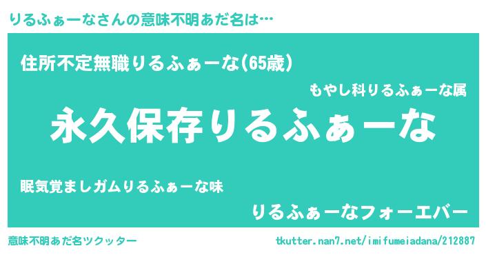 | ヒーロー風カッコイイあだ名 | 『ネオリルファーナ』『仮面リルダー』 |