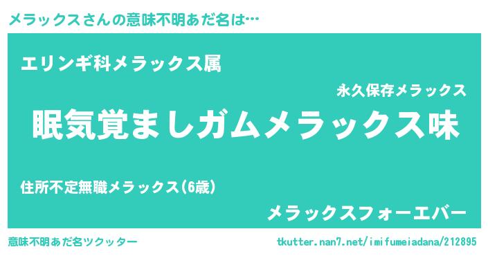| ヒーロー風カッコイイあだ名 | 『慈愛の使者メラックス』『仮面メラダー』 |