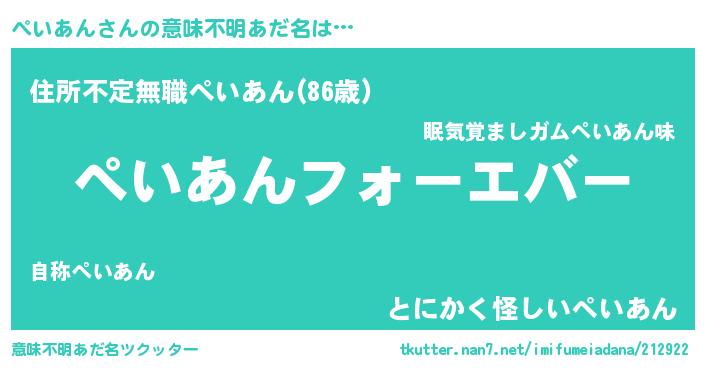 | ヘコむあだ名 | 『豆乳』『ぺいぷりん』『ぺいふぇ~』 |