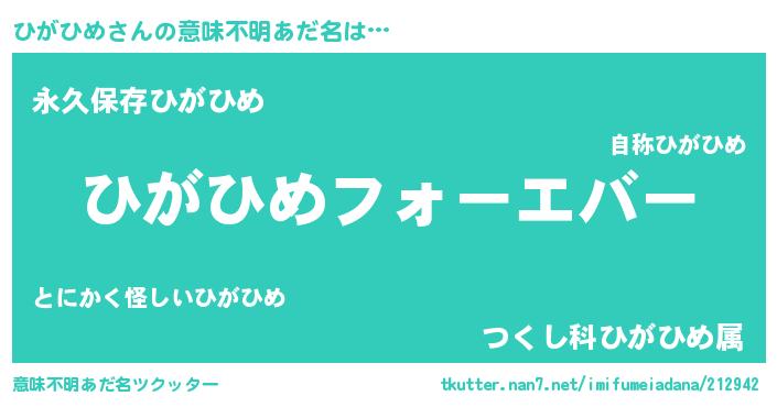 | ファンタジー風あだ名 | 『エターナルヒガヒメー』『ゼヒガトゥ』 |