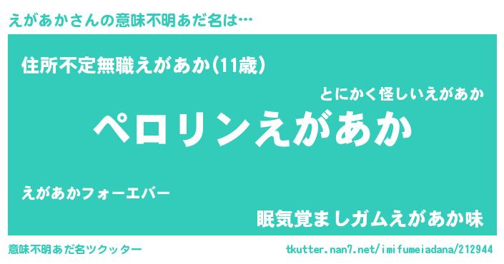 | 恥ずかしいあだ名 | 『プリティーえがあか』『エガリンリン』 |