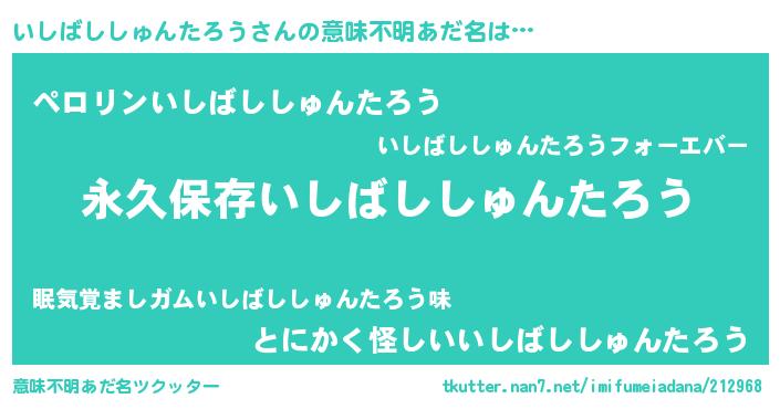 | 男性向けラノベタイトル風あだ名 | 『誰もが恐れるあのいしばししゅんたろうが、ぼくの専属メイドになるようです。』 |