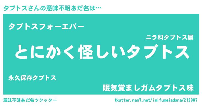 | 男性向けラノベタイトル風あだ名 | 『ダンジョンにタブトスを求めるのは間違っているだろうか』 |