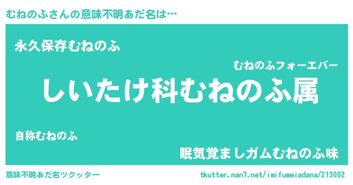| 胡散臭い通販商品みたいなあだ名 | 『絶対に幸福をもたらす健康食品…その名も「むねのふ」』 |