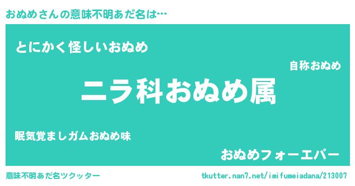 | 男性向けラノベタイトル風あだ名 | 『おぬめに滅ぼされるだけの簡単なお仕事です』 |