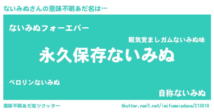 | ヒーロー風カッコイイあだ名 | 『ネオナイミヌ』『ウルトラないみぬマン』 |
