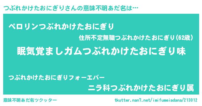 | 料理風あだ名 | 『つぶれかけたおにぎりのトマト煮』 |