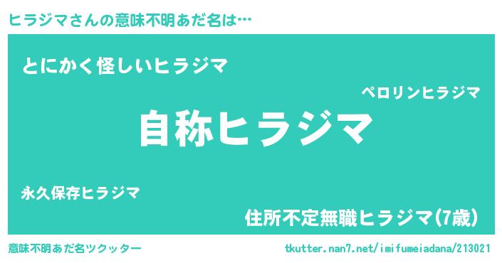 | ポケモン風あだ名 | 『ヒラセウス』『ヒヒラジマ』 |