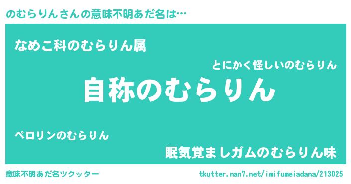 | 男性向けラノベタイトル風あだ名 | 『Re:のむらりんから始める異世界生活』 |