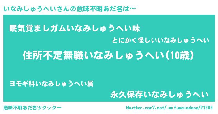 | ヒーロー風カッコイイあだ名 | 『仮面イナダー』『ネオイナミシュウヘイ』 |