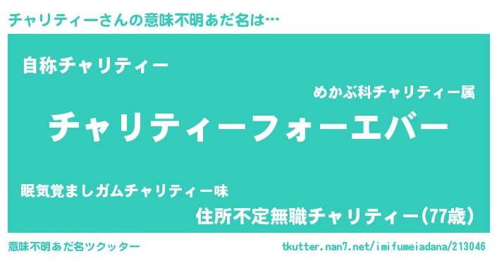 | ファンタジー風あだ名 | 『エターナルチャリティーー』 |