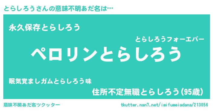 | 欧米人風あだ名 | 『とらしろう・ステッグマイヤー』 |
