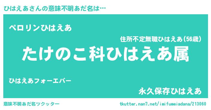 | ヒーロー風カッコイイあだ名 | 『スーパーヒハエア』『ネオヒハエア』 |