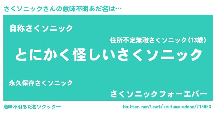 | 肩書あだ名 | 『さくソニック塾長』『さくソニック閣下』 |