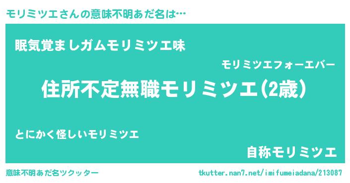 | 男性向けラノベタイトル風あだ名 | 『魔弾の王とモリミツエ』 |