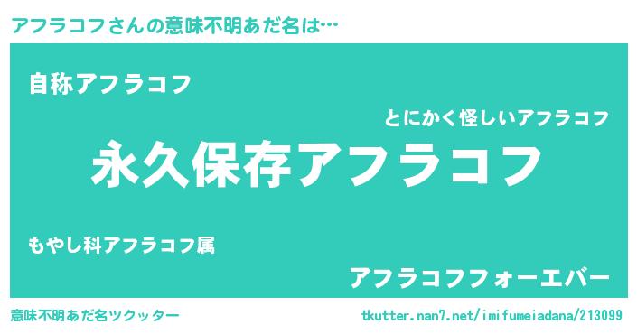 | 恥ずかしいあだ名 | 『アフちん』『アフラコフデラックス』 |