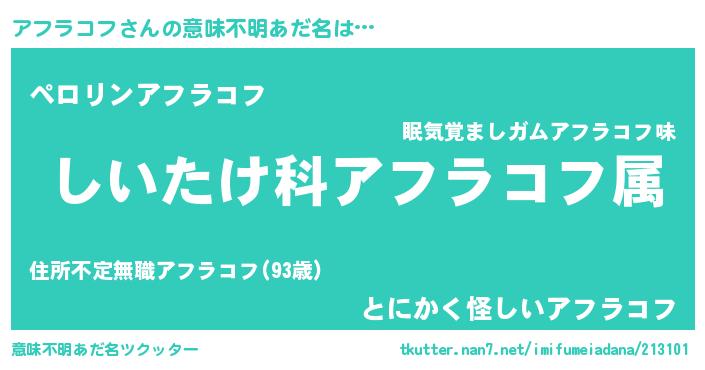 | 男性向けラノベタイトル風あだ名 | 『はたらくアフラコフさま!』 |