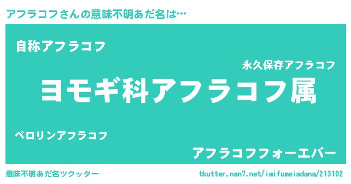 | ポケモン風あだ名 | 『アフキング』『アフセウス』 |
