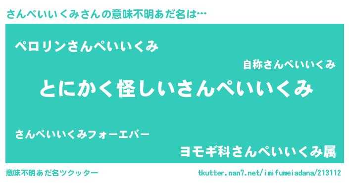 | 女子向けラノベタイトル風あだ名 | 『さんぺいいくみ様がみてる』 |