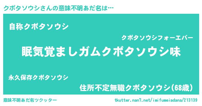 | 男性向けラノベタイトル風あだ名 | 『うちのクボタソウシが世界を掌握している!』 |