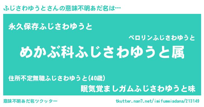 | ヘコむあだ名 | 『ふじさわゆうと(笑)』『ふじふぇ~』 |