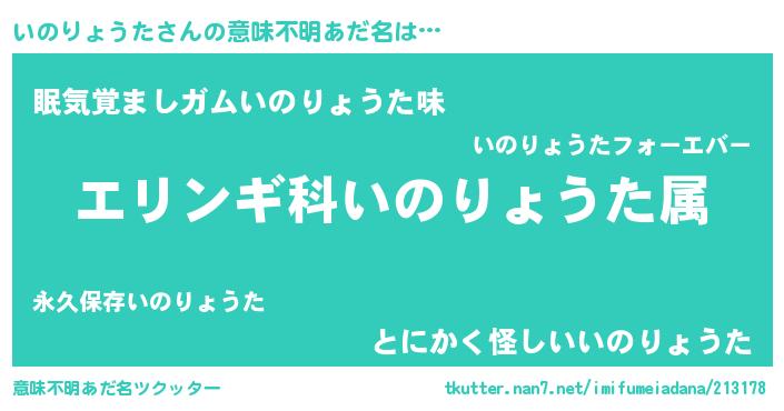 | 男性向けラノベタイトル風あだ名 | 『イノリョウタスレイヤー』 |