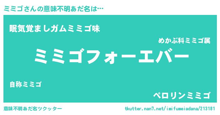 | 男性向けラノベタイトル風あだ名 | 『やはりミミゴの青春ラブコメはまちがっている 』 |