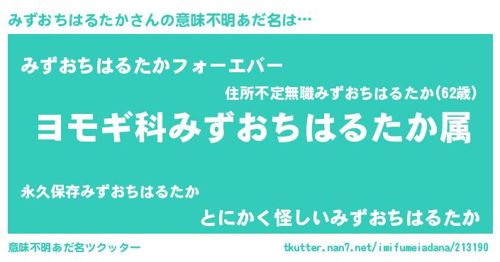 | 肩書あだ名 | 『みずおちはるたか少佐』 |