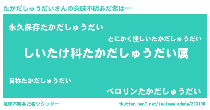 | 料理風あだ名 | 『たかだしゅうだいごはん』 |