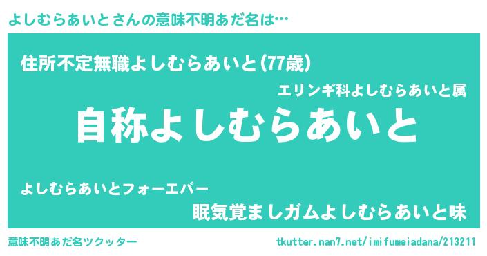 | 肩書あだ名 | 『よしむらあいと総統』 |