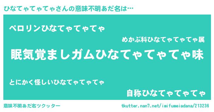 | 女子向けラノベタイトル風あだ名 | 『ひなてゃてゃてゃ恋絵巻』 |