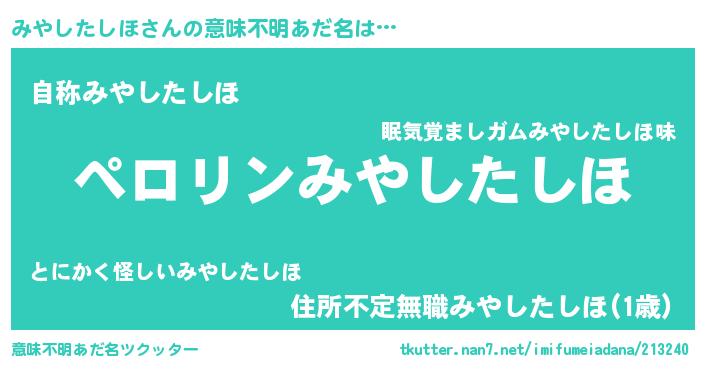 | ヘコむあだ名 | 『みやふぇ~』『みやを』『豆乳』 |