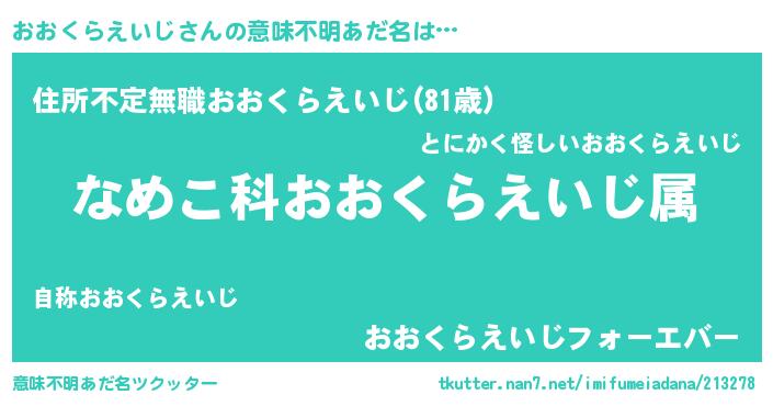 | 料理風あだ名 | 『おおくらえいじごはん』 |