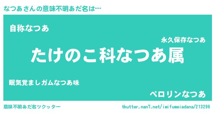 | 男性向けラノベタイトル風あだ名 | 『転生したらなつあだった件』 |